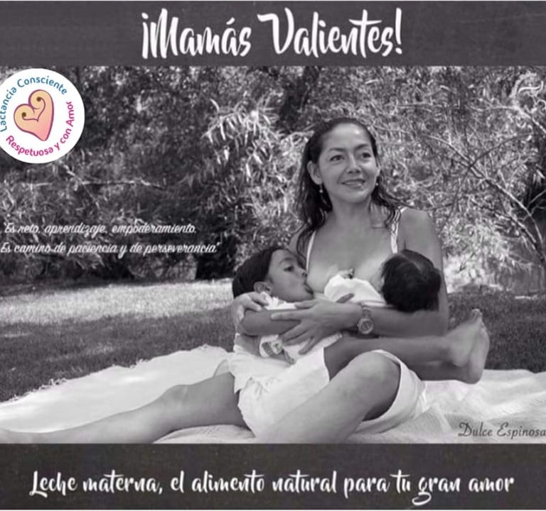 Soy mamá de dos varones. Lalo, el mayor, tuvo lactancia mixta por 1.5 meses; y Rafa, el menor, quien tuvo lactancia exclusiva desde el momento del nacimiento. Ambos se destetaron de manera natural, consciente y respetuosa hasta los 7 años aproximadamente.